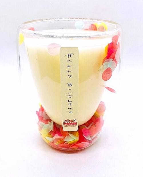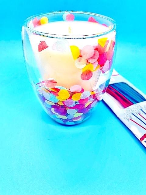$2.50 - $32.00$34.00We are offering 2 adorable candles for those special birthday gifts! And they're TWO GIFTS IN ONE! Our double glassed Confetti candle and Birthday Banner candle are unique and will make your recipient very happy! Both are paired with our Coconut Vanilla Cake fragrance that smells like you just baked a birthday cake! After burn, gently wash glass and use for juice, water, wine; OR a vase, pencil holder, bread stick holder, paper clips...the list goes on! These are wrapped in gift bags! They are delicate so we highly suggest pairing the Birthday Banner with one of our matching chic kraft tubes! It's sure to be a loved Birthday gift!SelectQuantityComing soon