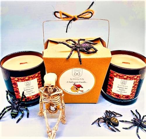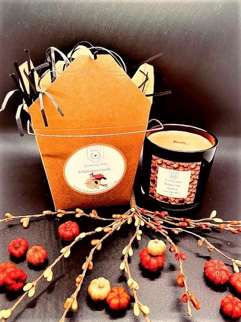 This black 10 oz. candle for Halloween will not disappoint! Light it before the trick-or-treaters come to put you in the mood and bring that Halloween spirit into your home. The delicious fragrance brings back memories of Halloween parties and that fun game, bobbin' for apples. Comes wrapped in a take-out box with a witchy dust cover to add to the ghoulish vibe.