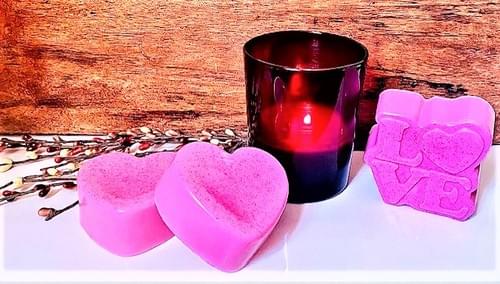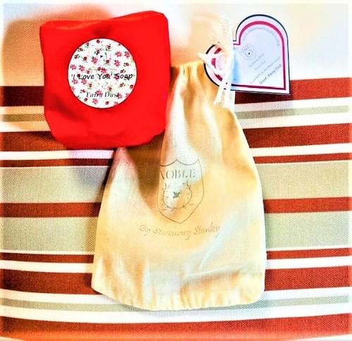 Hearts & a square LOVE logo word art are the sweetest thoughts you can give a loved one, like daughters, sisters, aunts, grandmothers, etc. These are perfect for anyone to receive <3 Paired with our beautiful fragrant 'Fairy Dust' scent: (floral, citrus, rose, jasmine, lily woody, musky, earthy, amber & sweet cotton candy) or our 'Night Blossom' scent: (pear, agave, marine, cherry blossom, rose, powder, dark musk & amber) they are both divine and come wrapped in our cotton bag with red bow, these are too cute to miss out on! We can create a masculine scent for the men too :) These goat milk & shea butter soaps lather with luxuriousness & are a beautiful thought! Request our colorful sparkles for no extra fee; they're all natural and made from eucalyptus trees. It just gives the soaps that extra LOVE!